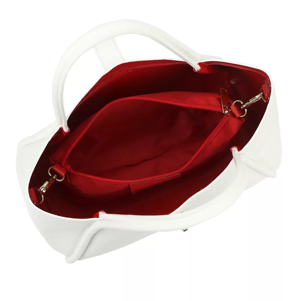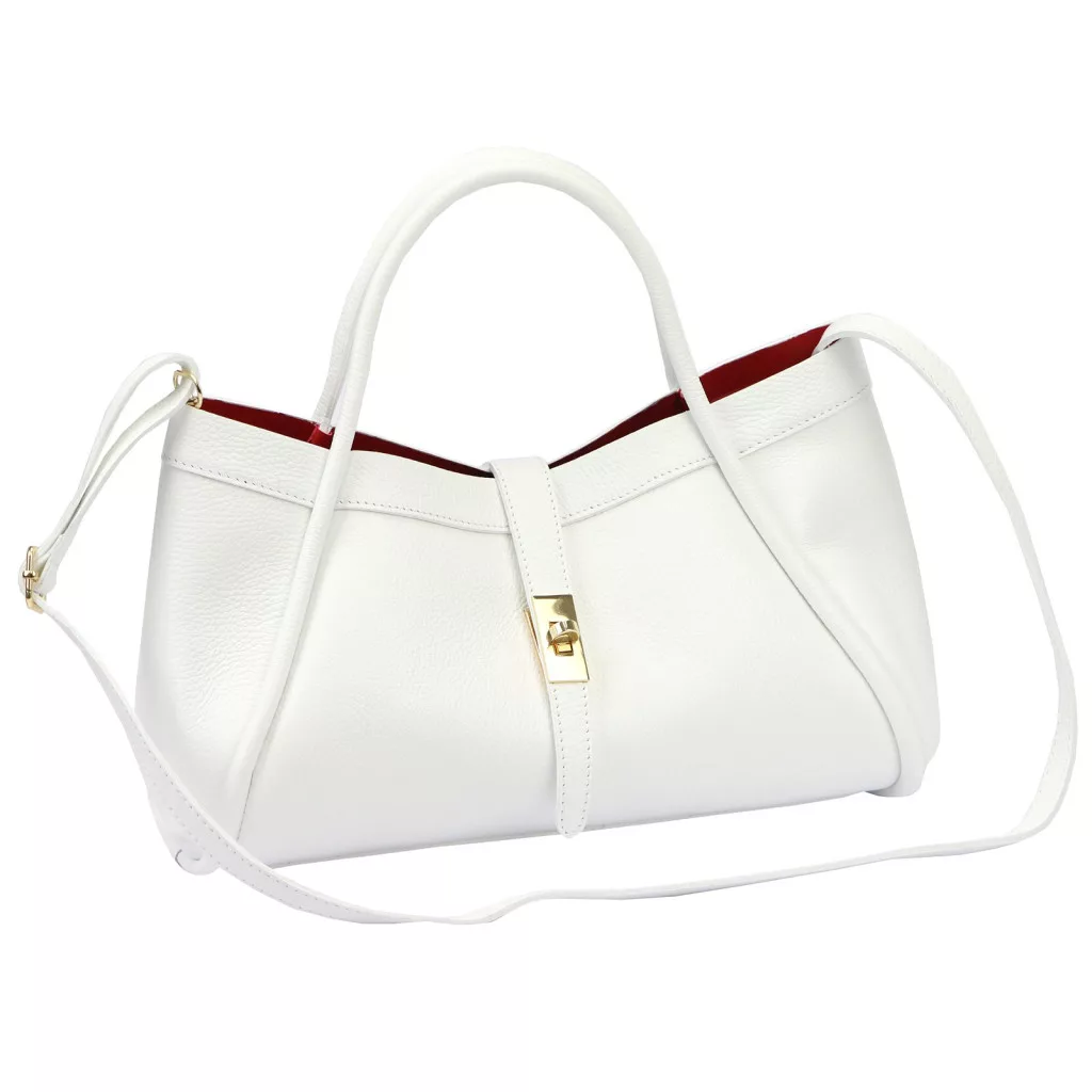A táska prémium minőségű, valódi marhabőrből készült, amely puha tapintású, ugyanakkor tartós és időtálló. A fehér szín a feng shui szerint a tisztaságot, az új kezdeteket és a harmóniát szimbolizálja, így friss, elegáns és kifinomult kiegészítője lehet bármely öltözéknek. A kontrasztos belső szín modern és különleges karaktert ad a táskának.