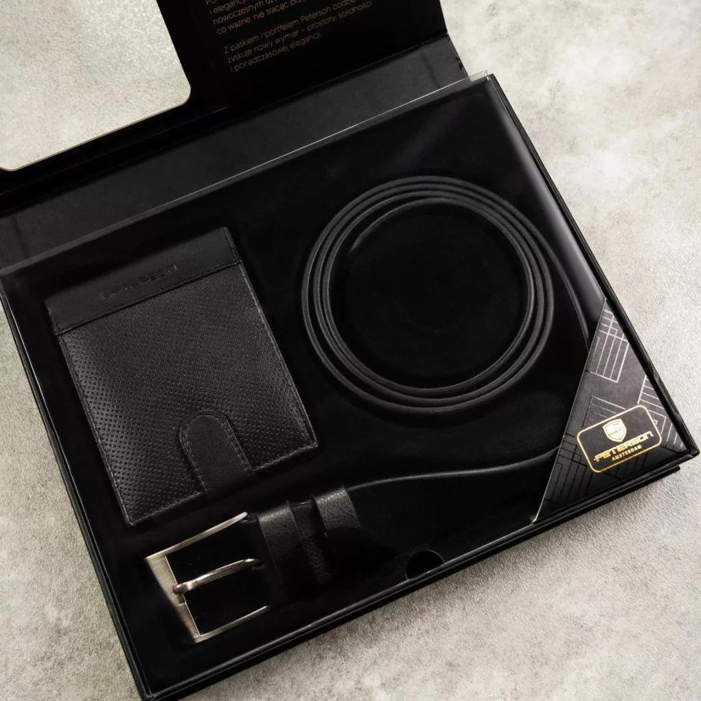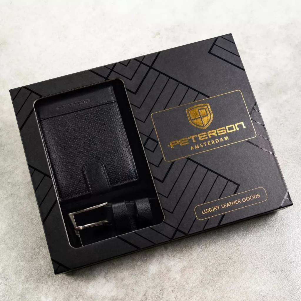 A Peterson PTN SET N992L-DOT BLACK fekete férfi marhabőr pénztárca–öv ajándék szett modern, mégis időtálló megjelenésű összeállítás, amely a praktikus belső elrendezést karakteres külső kialakítással ötvözi. A szett egységes stílust képvisel, így kiváló választás mindennapi használatra és igényes ajándékként is.