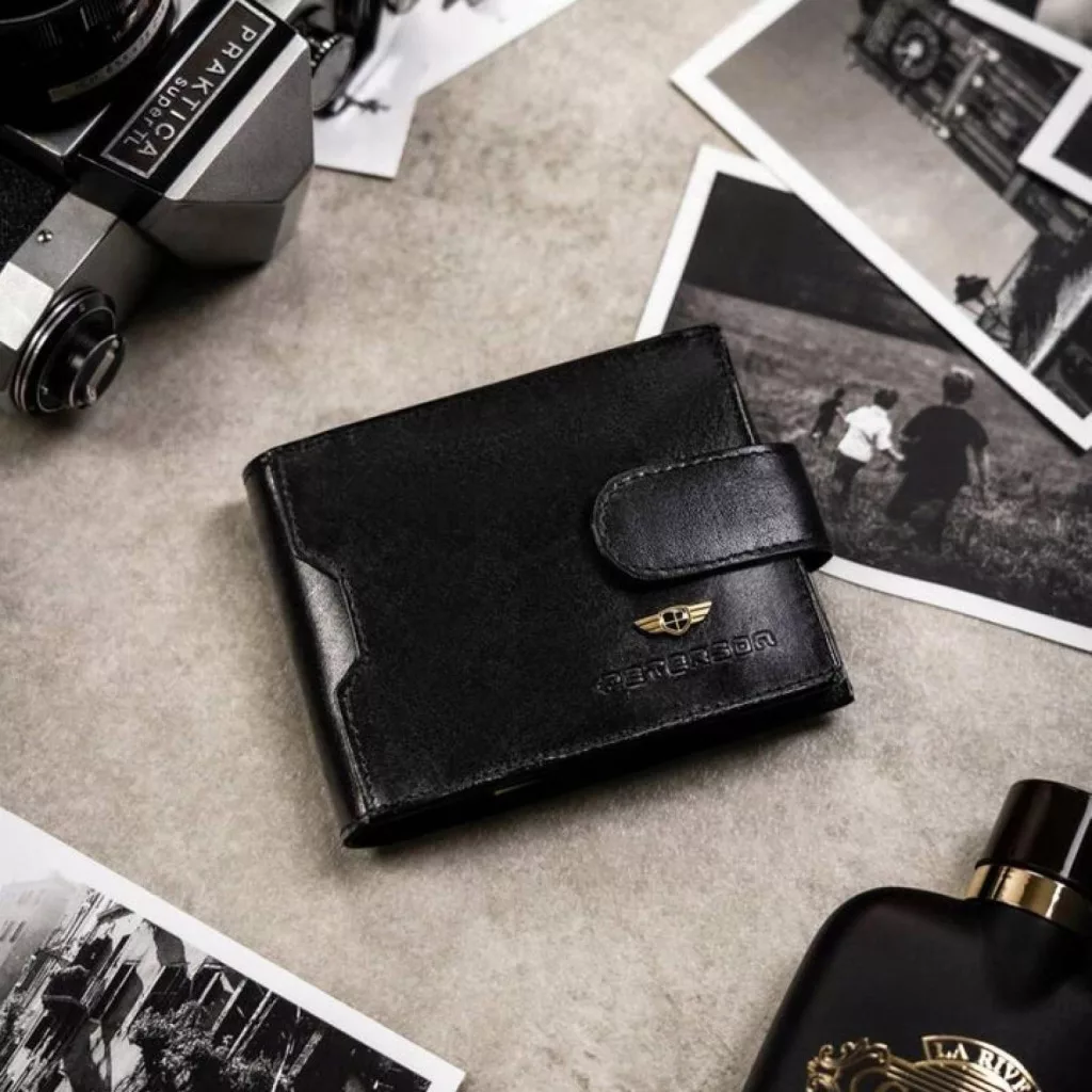 Peterson PTN SET3-N78L-VT-5433 BLACK fekete férfi marhabőr pénztárca ajándék szett