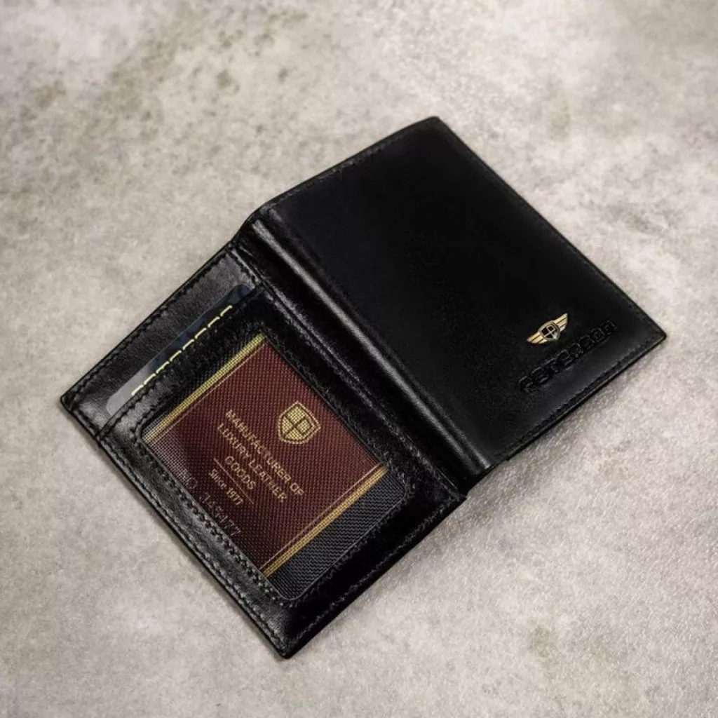 A különálló bankkártyatartó kompakt méretű, mégis jól rendszerezhető. RFID védelemmel ellátott, amely segít megóvni a kártyákat az illetéktelen adatolvasástól. Hat darab bankkártyatartó rekesszel, egy hálós igazolványtartóval és egy papírpénztartó rekesszel rendelkezik. Külső megjelenését dombornyomott márkajelzés és elegáns fém logó egészíti ki.