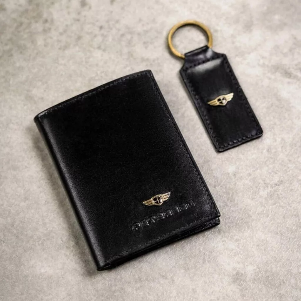 Elegáns, férfias és időtálló ajándék szett, amely a klasszikus bőr kiegészítők kedvelőinek készült. A letisztult fekete szín, a finom fényű bőr és a precíz részletek harmonikus egységet alkotnak, így a szett üzleti és mindennapi használatra egyaránt kiváló választás.