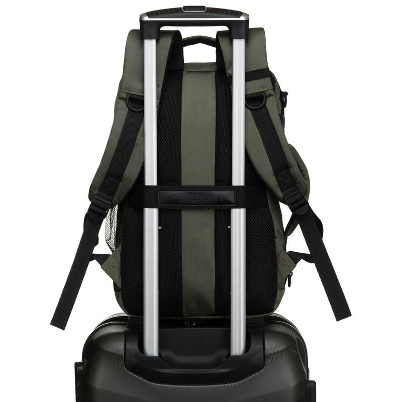 A légáteresztő 3D hálós hátrész és a párnázott, állítható vállpántok kényelmes viselést biztosítanak hosszabb utakon is. Az oldalsó kompressziós pántok segítenek a poggyász méretének optimalizálásában, míg a hátsó rögzítőpánt lehetővé teszi a bőrönd fogantyújához való erősítést. A két puha fogantyú és a hosszú, állítható vállpánt révén a hátizsák hordható klasszikus hátizsákként, sporttáskaként vagy válltáskaként is.