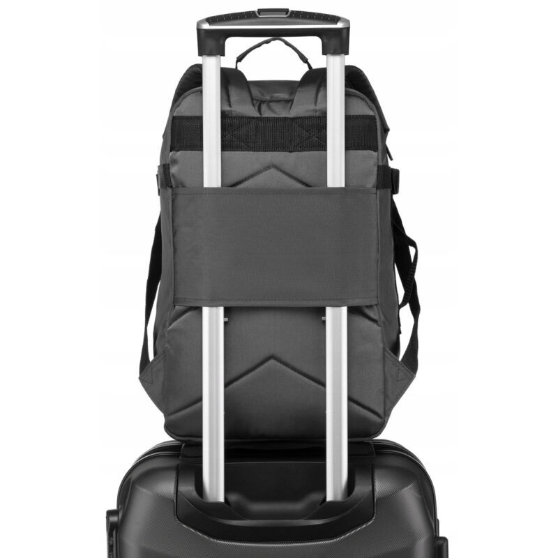 A hátizsák hátsó falán van egy fogantyú, amelyet a bőröndhöz rögzíthetsz.