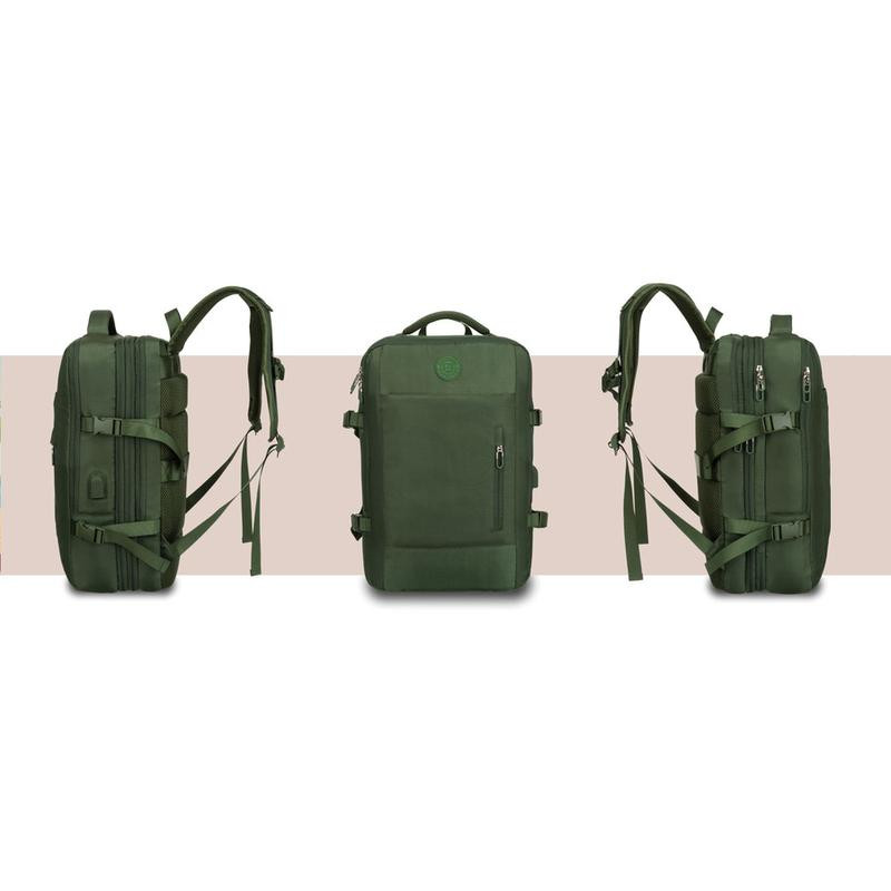Stílusos és funkcionális zöld utazóhátizsák laptophellyel és USB-porttal a Peterson márkától. A háromoldalú belső struktúra és a jól átgondolt rekeszelés biztosítja, hogy minden tárgynak meglegyen a helye, miközben a hátizsák mélysége igény szerint 15-ről 25 cm-re növelhető. A hátsó stabilizáló pántok és a hálós válaszfalak segítik a szervezett és kényelmes utazást.