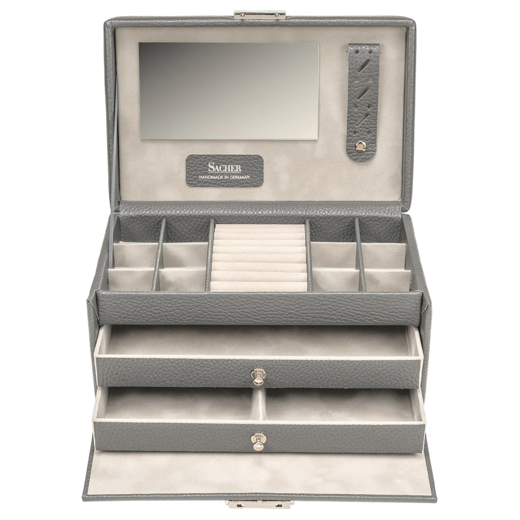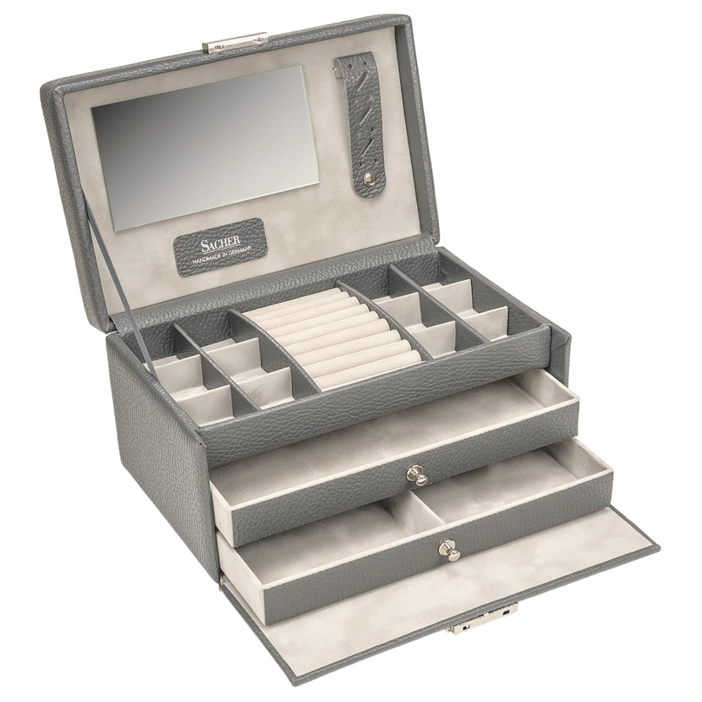 Sacher Emma szürke valódi bőr ékszertartó, ékszerdoboz