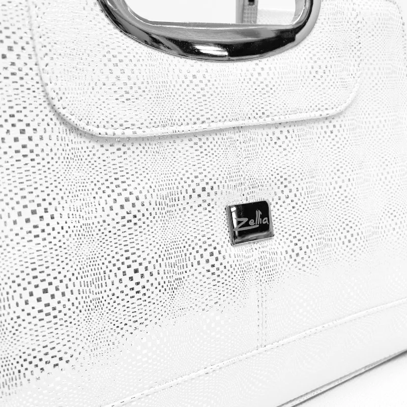 Zellia kézitáska elegáns viselete alkalmakra és hétköznapokra is hivatali öltözethez. Közepes méretű kecses fazonú, állítható hosszúpánttal könnyen vállra tehető. Oldaltpántjának maximális hossza 110 cm.