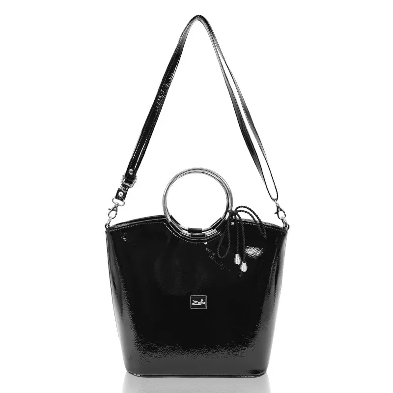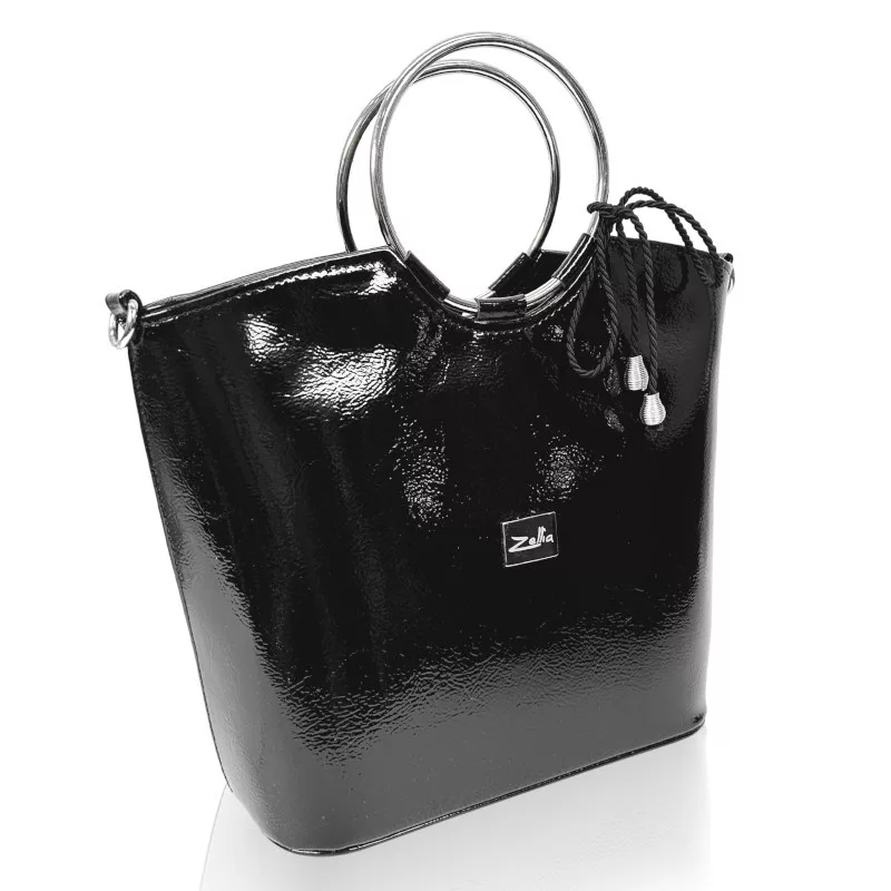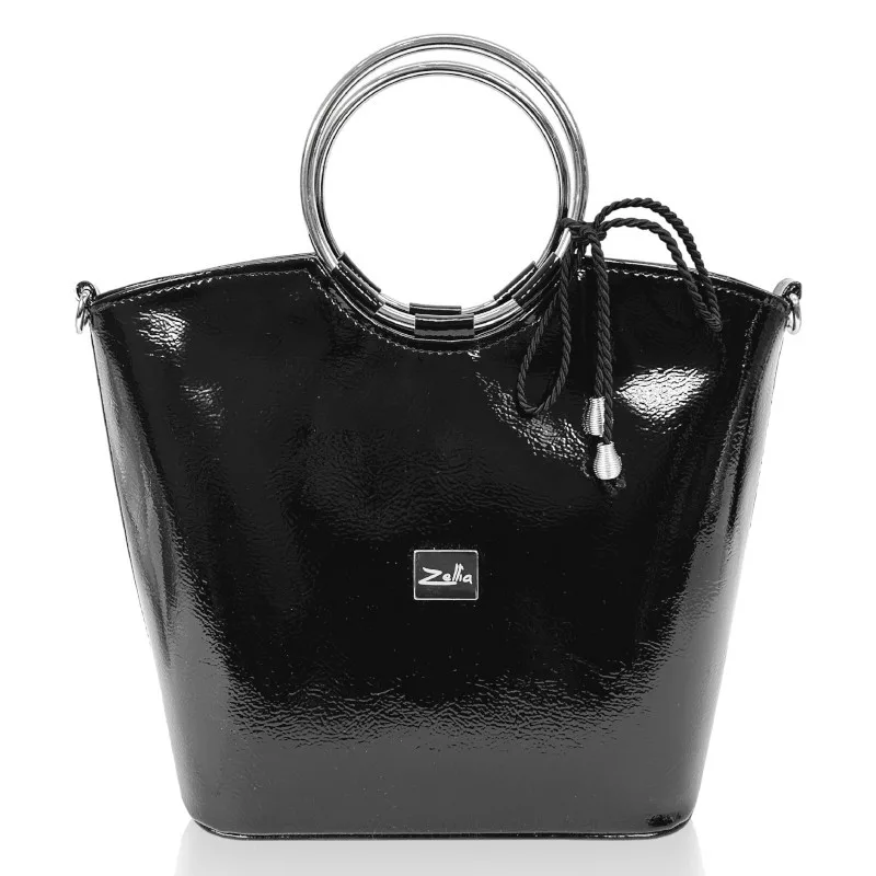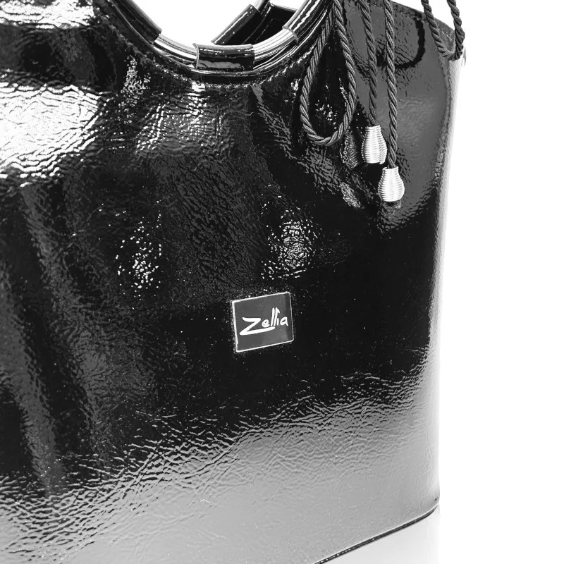 Zellia női, lakk fekete kézitáska, válltáska