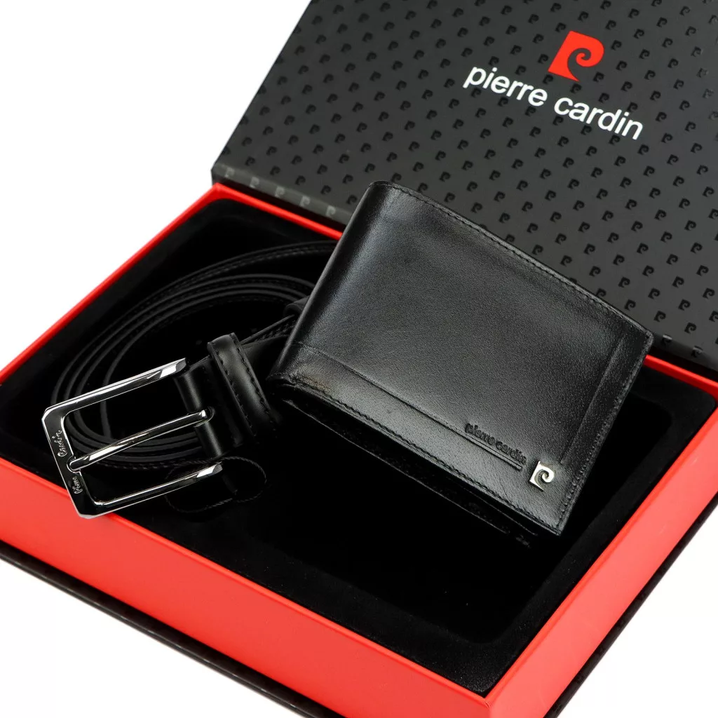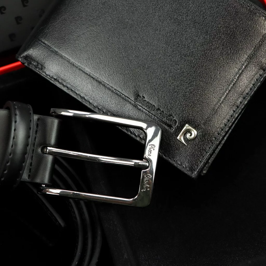 Pierre Cardin ZG-140 fekete férfi bőr pénztárca, öv ajándék szett 125 cm