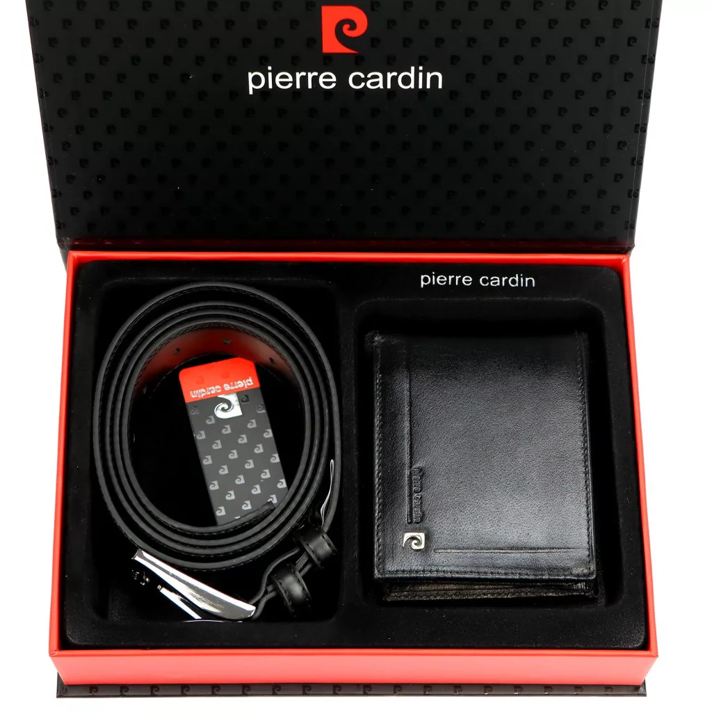 Pierre Cardin ZG-140 fekete férfi bőr pénztárca, öv ajándék szett 130 cm