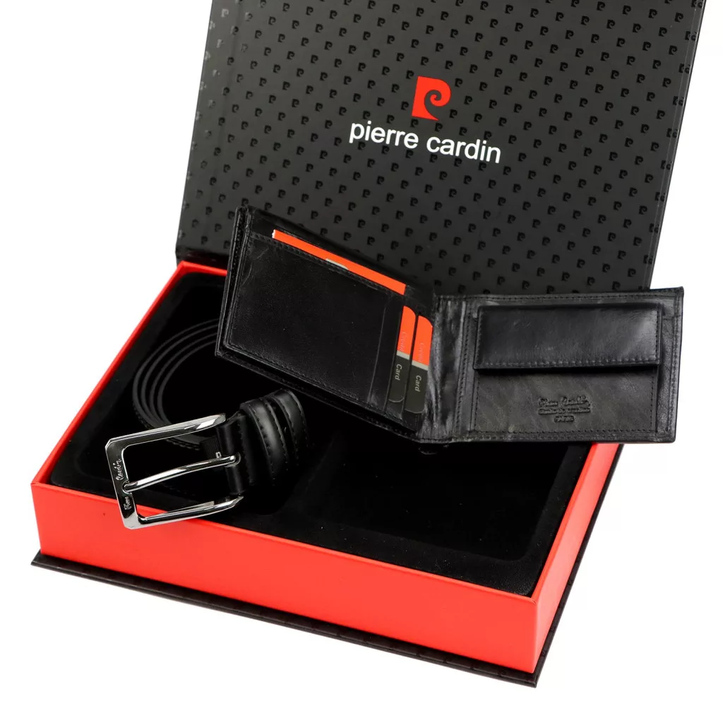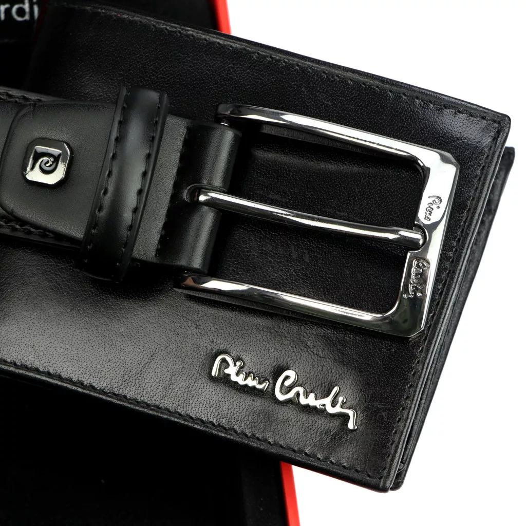 Pierre Cardin ZG-141 férfi fekete bőr pénztárca és öv ajándék szett 135 cm