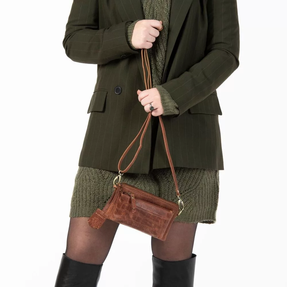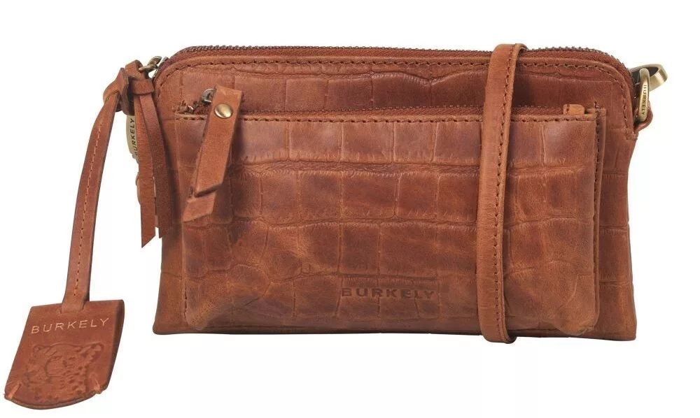 Burkely Croco Cassy kollekciós konyak színű női bőr válltáska, crossbody. Nagyszerű kombinációja a tradicionális bőrnek és a legtrendibb formának.