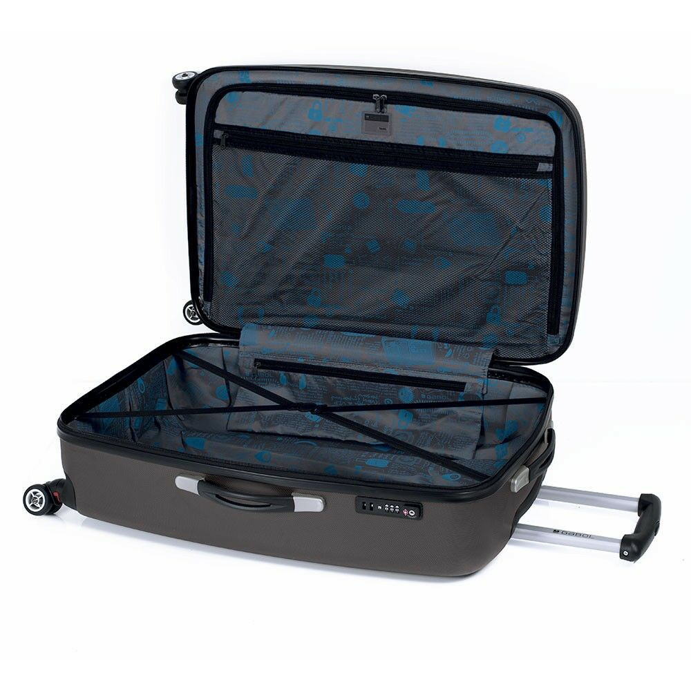 A Gabol 4-kerekes kabinbőrönd rugalmas anyagból készült, könnyű és divatos színekben pompázik. Állítható húzókarral rendelkezik, a bolygókerekeknek köszönhetően a bőrönd minden irányba könnyen mozgatható. Kényelmesen emelhető a bőrönd tetején elhelyezett kézifogó segítségével.