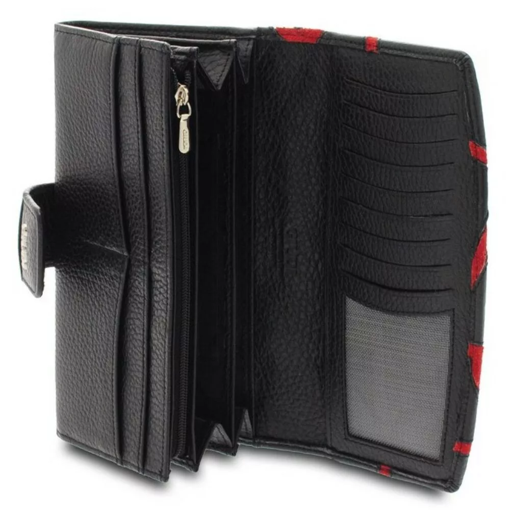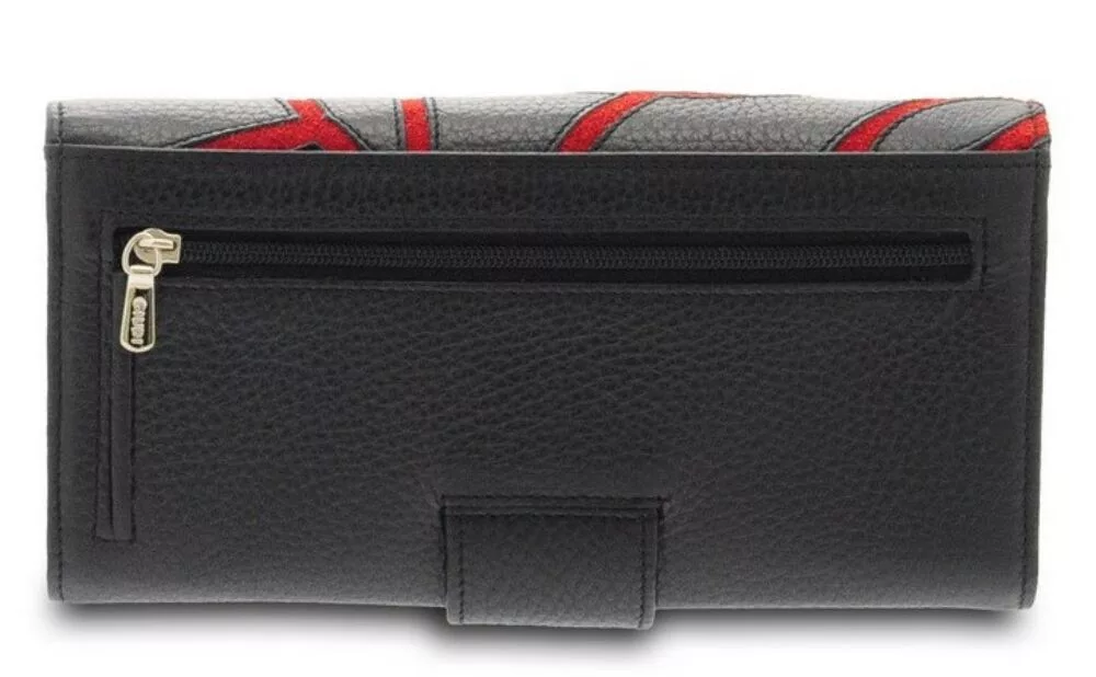 Giudi női, nagyméretű, fekete-piros bőr pénztárca
