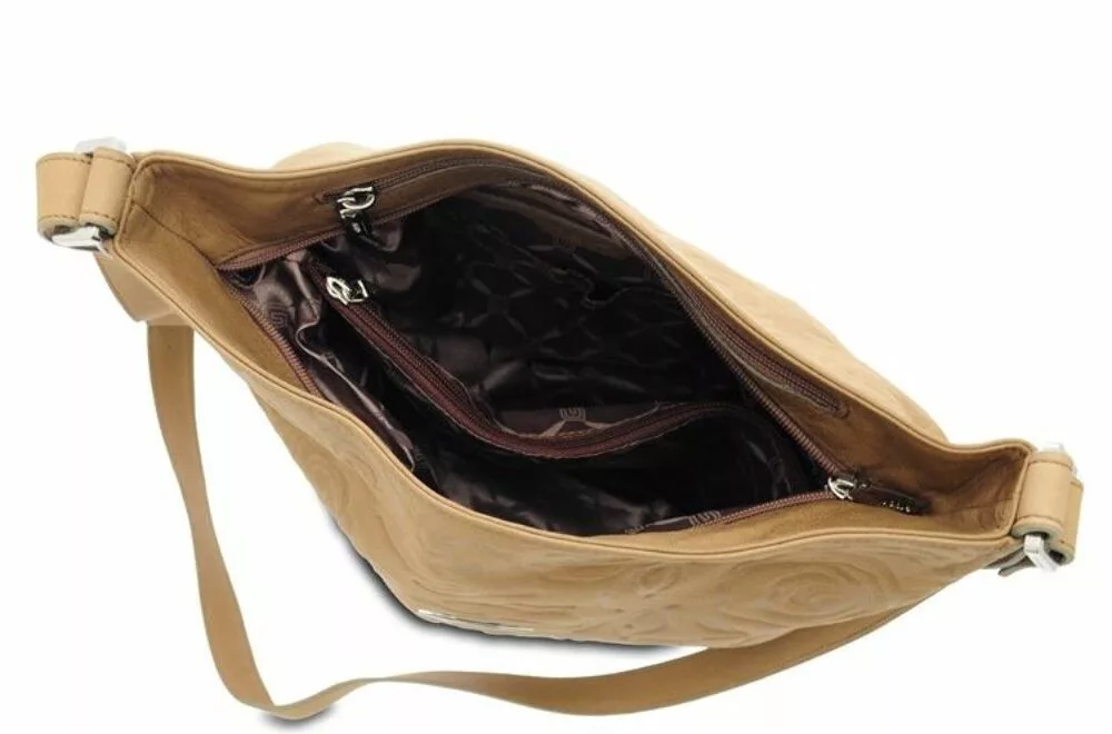 Giudi taupe nyomott virág mintás női bőr válltáska 30 x 26 cm