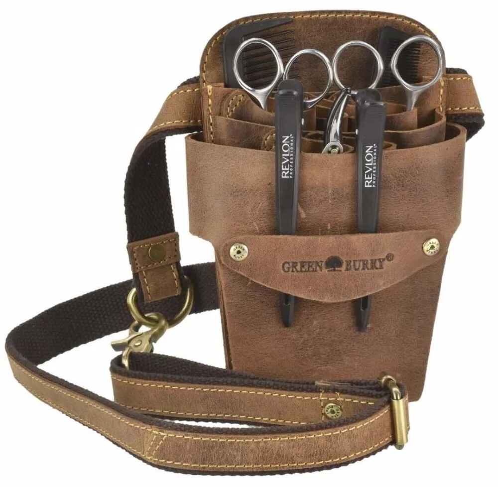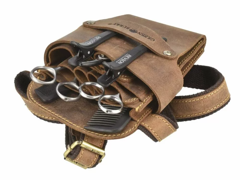 Greenburry fodrász szerszám, olló tartó bőr övtáska, öv