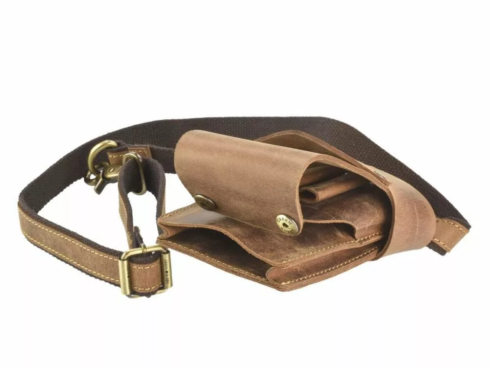 A Greenburry Vintage kollekciójának antik hatású barna marhabőr fodrász szerszám tartó övtáskája stílusos megjelenése mellett funkcionalitása miatt is jó választás. A fodrászoknak elengedhetetlenek a kellékei, szerszámai, ez az övtáska pedig lehetővé teszi azok könnyed tárolását, így azok mindig kéznél lesznek, amikor csak szükség van rájuk.