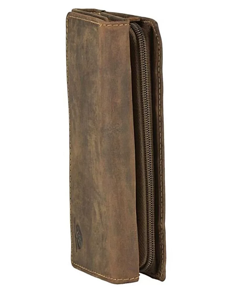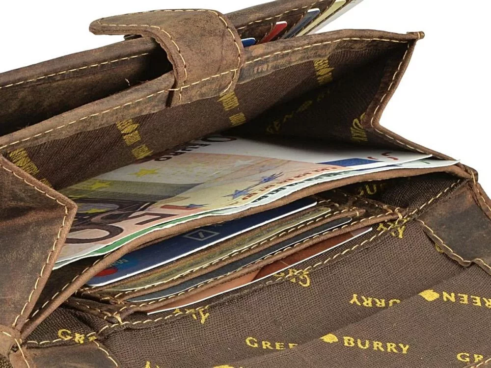 A Greenburry csak első osztályú bőrt használ a pénztárcáihoz, amely garantálja a hosszú élettartamot és a tökéletes felhasználói élményt. Fedezze fel a klasszikus, erős anyagból készült Greenburry Vintage  pénztárcákat természetes, csiszolt marhabőrből, gondosan megtervezett elrendezéssel, motoros és teherautó-változatként rusztikus láncszíjjal és szegecselt patentokkal. Erős, elegáns textúrájú és illatos bőrének köszönhetően mindegyik modell érzéki élmény.