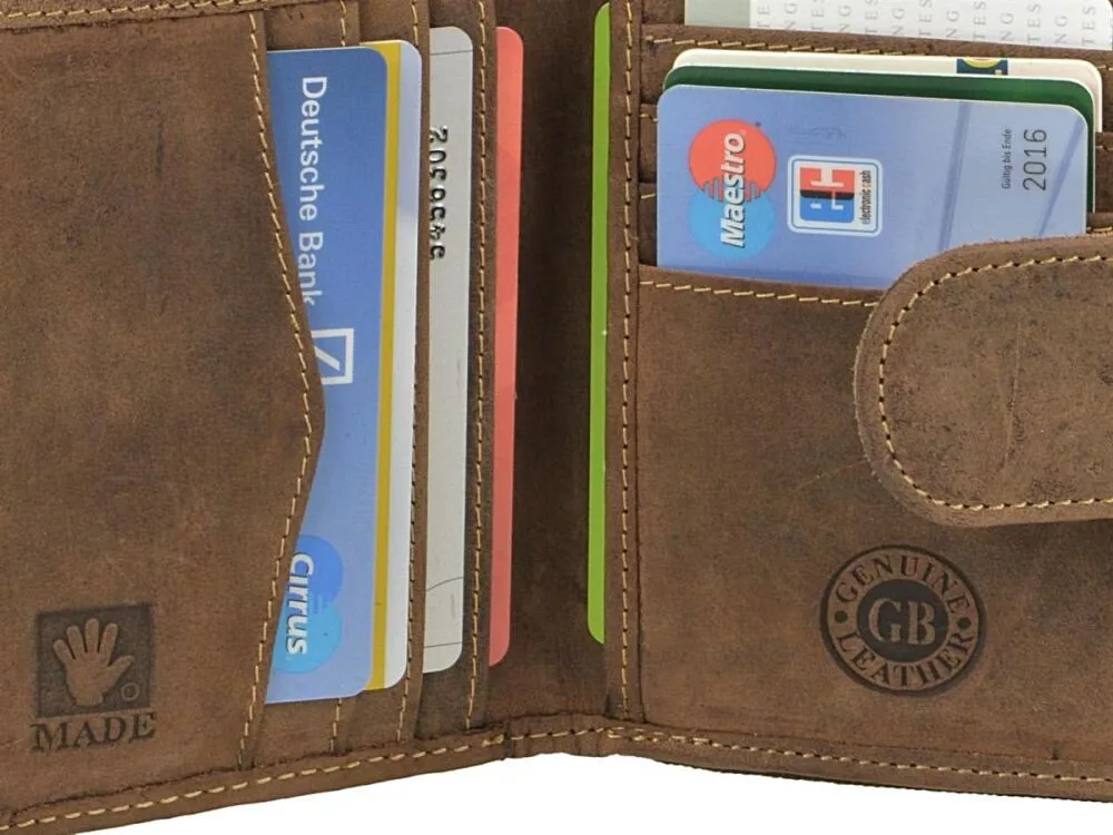 A Greenburry csak első osztályú bőrt használ a pénztárcáihoz, amely garantálja a hosszú élettartamot és a tökéletes felhasználói élményt. Fedezze fel a klasszikus, erős anyagból készült Greenburry Vintage  pénztárcákat természetes, csiszolt marhabőrből, gondosan megtervezett elrendezéssel, motoros és teherautó-változatként rusztikus láncszíjjal és szegecselt patentokkal. Erős, elegáns textúrájú és illatos bőrének köszönhetően mindegyik modell érzéki élmény.