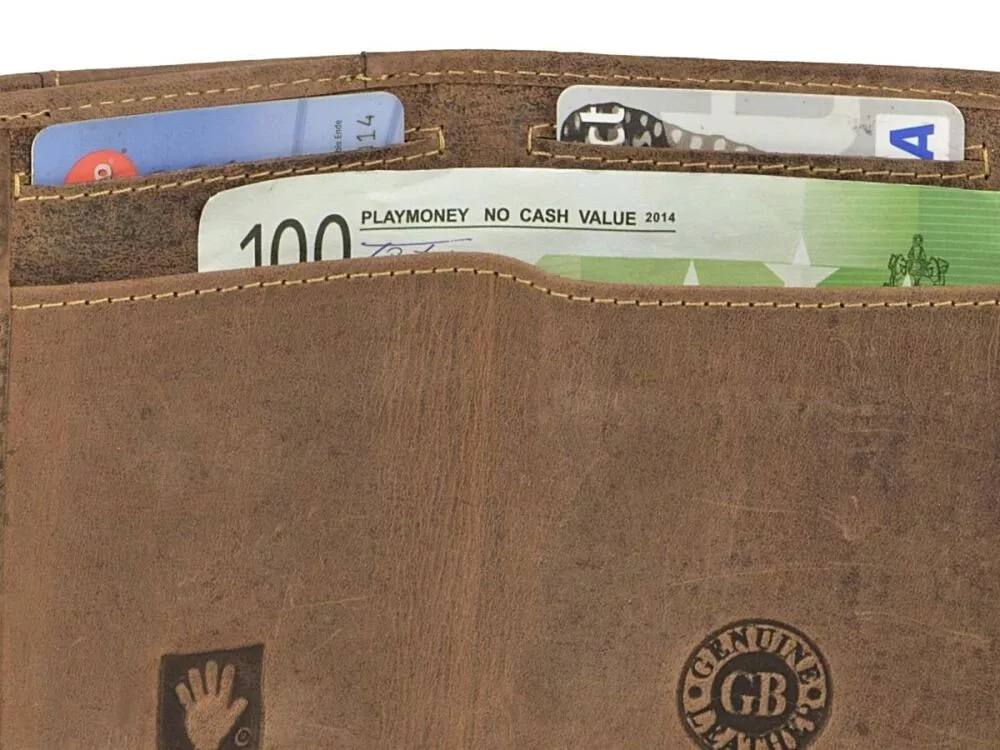 A Greenburry csak első osztályú bőrt használ a pénztárcáihoz, amely garantálja a hosszú élettartamot és a tökéletes felhasználói élményt. Fedezze fel a klasszikus, erős anyagból készült Greenburry Vintage  pénztárcákat természetes, csiszolt marhabőrből, gondosan megtervezett elrendezéssel, motoros és teherautó-változatként rusztikus láncszíjjal és szegecselt patentokkal. Erős, elegáns textúrájú és illatos bőrének köszönhetően mindegyik modell érzéki élmény.
