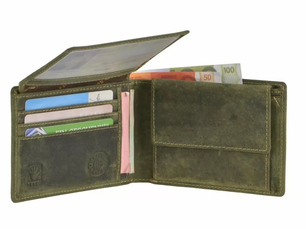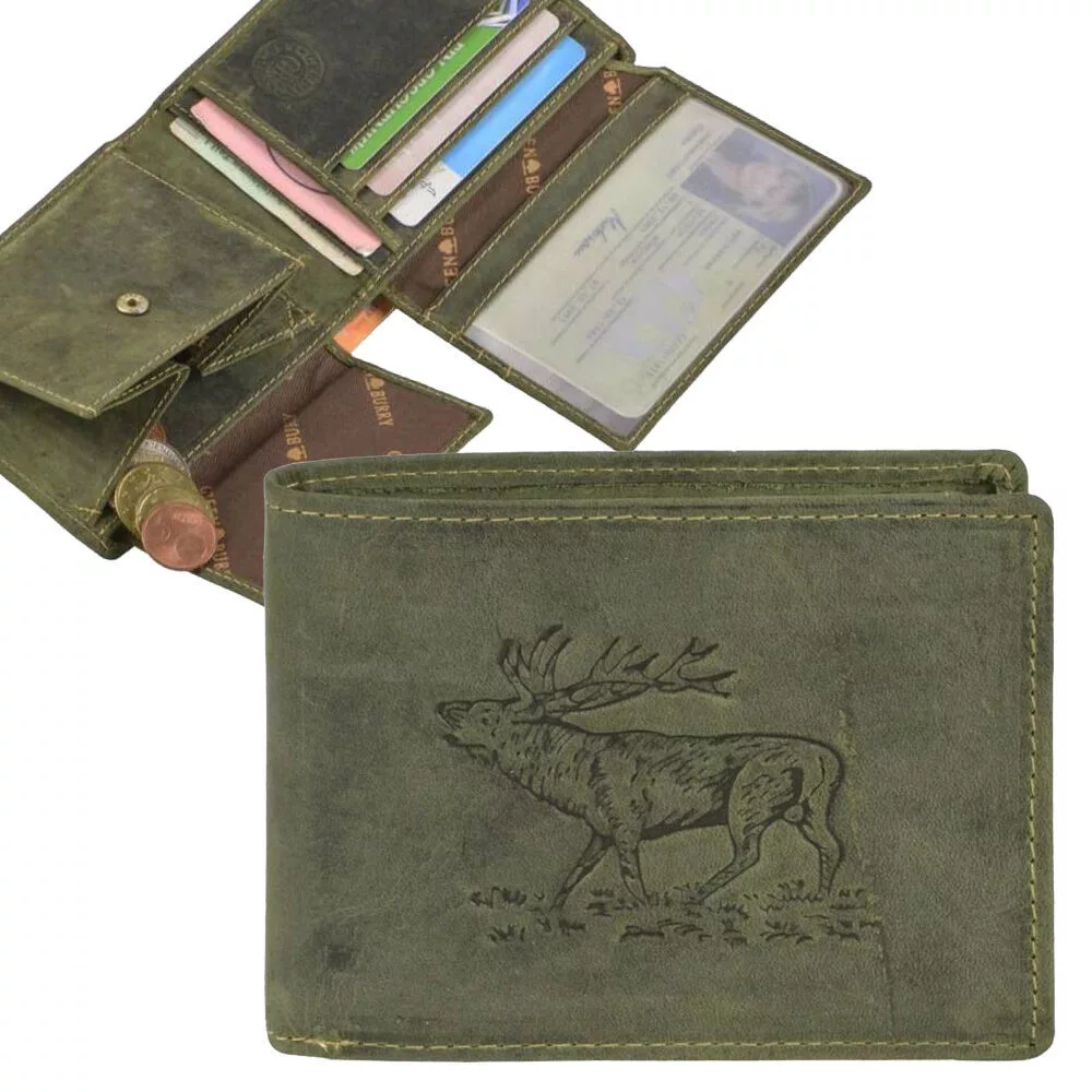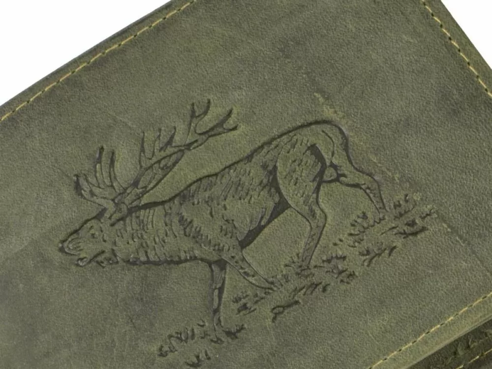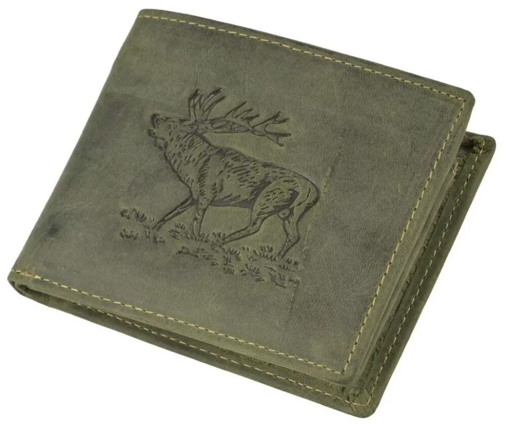 Greenburry szarvas mintás vadász bőr pénztárca, oliva