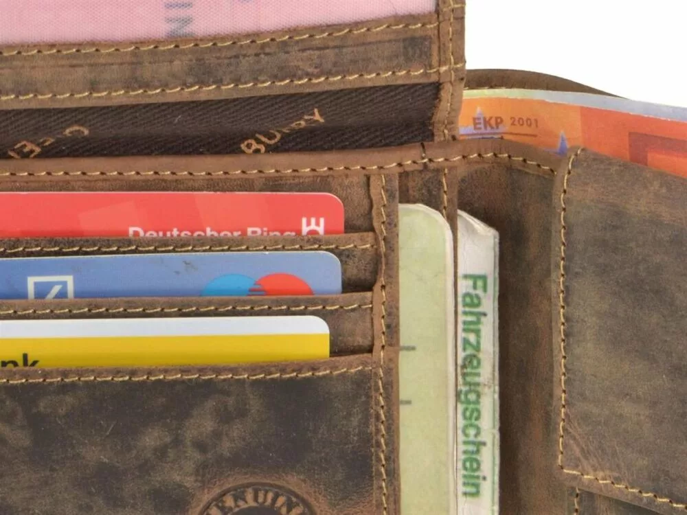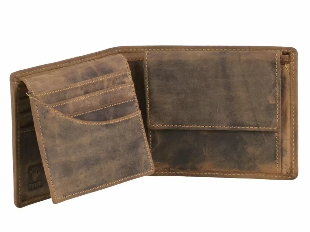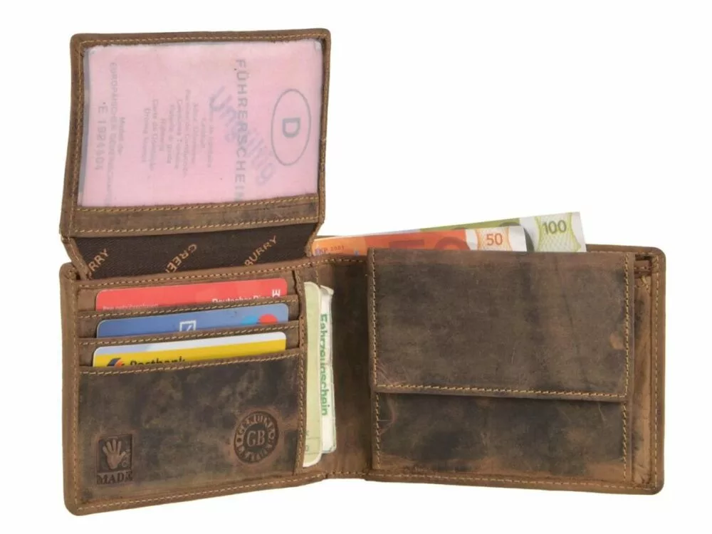 A Greenburry csak első osztályú bőrt használ a pénztárcáihoz, amely garantálja a hosszú élettartamot és a tökéletes felhasználói élményt. Fedezze fel a klasszikus, erős anyagból készült Greenburry Vintage  pénztárcákat természetes, csiszolt marhabőrből, gondosan megtervezett elrendezéssel, motoros és teherautó-változatként rusztikus láncszíjjal és szegecselt patentokkal. Erős, elegáns textúrájú és illatos bőrének köszönhetően mindegyik modell érzéki élmény.