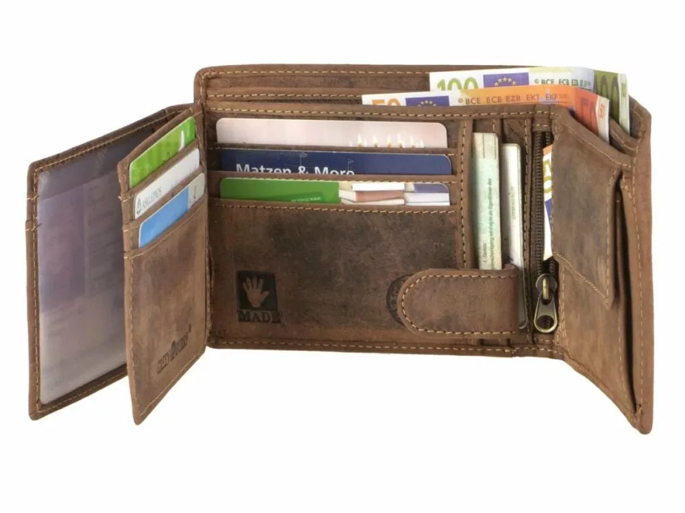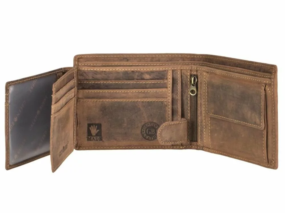 A Greenburry csak első osztályú bőrt használ a pénztárcáihoz, amely garantálja a hosszú élettartamot és a tökéletes felhasználói élményt. Fedezze fel a klasszikus, erős anyagból készült Greenburry Vintage  pénztárcákat természetes, csiszolt marhabőrből, gondosan megtervezett elrendezéssel, motoros és teherautó-változatként rusztikus láncszíjjal és szegecselt patentokkal. Erős, elegáns textúrájú és illatos bőrének köszönhetően mindegyik modell érzéki élmény.