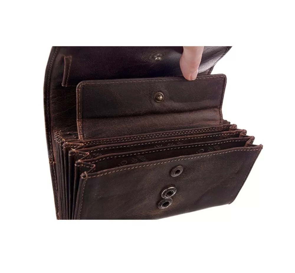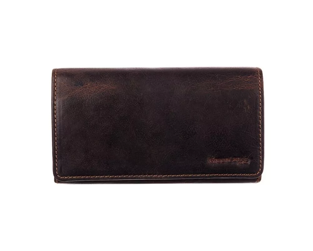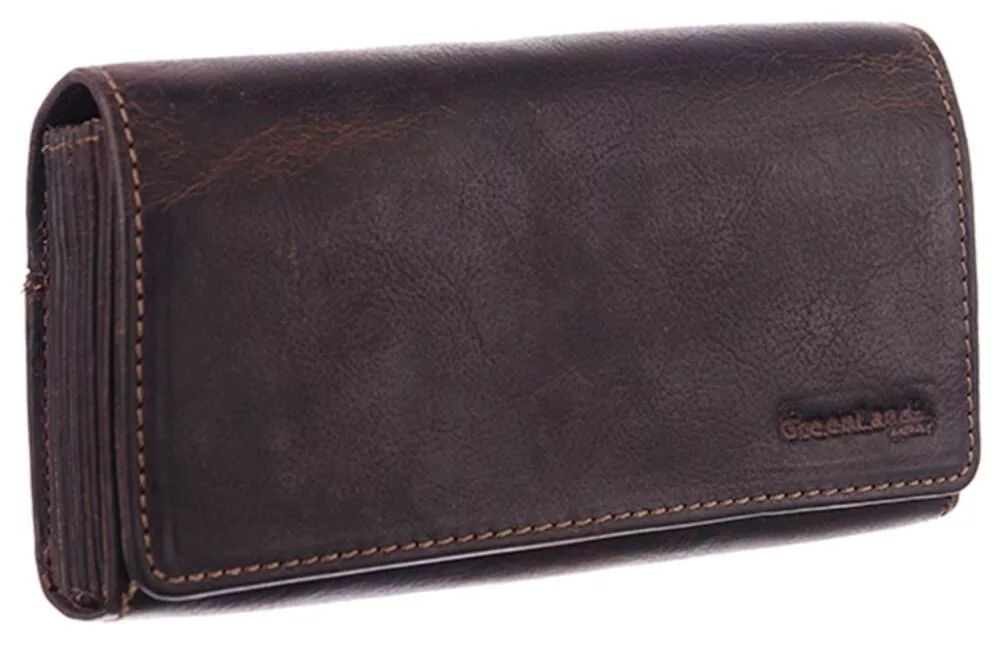 GreenLand Nature sötétbarna bőr pénztárca, pincértárca, taxis brifkó 17,5 x 10 cm