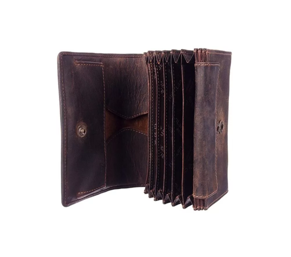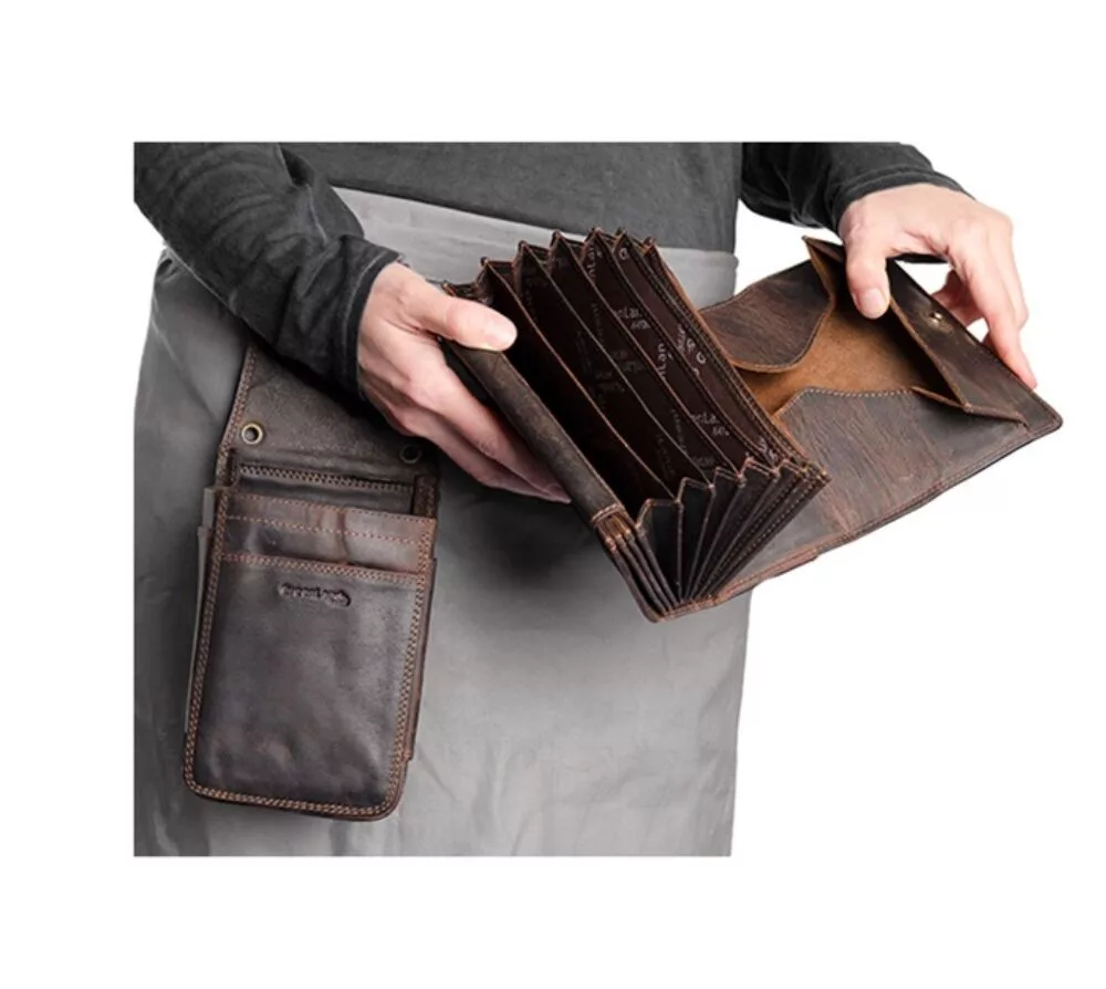 Egy trendi, koptatott hatású, rusztikus bőrből készült egyedi pincér pénztárcát, mely tökéletesen egyesíti a magas minőséget és a stílust.