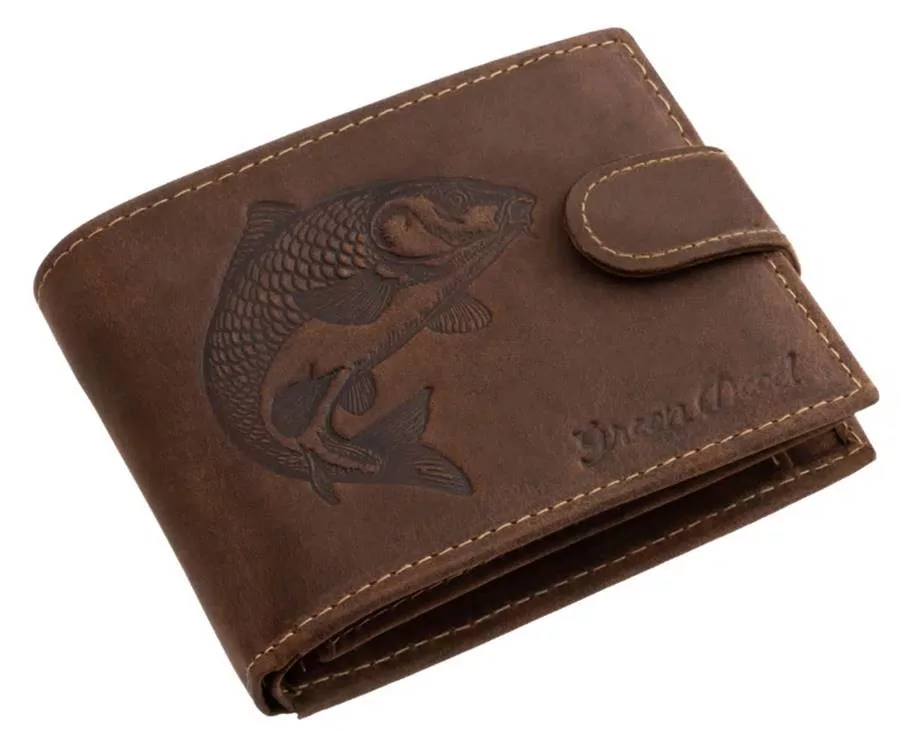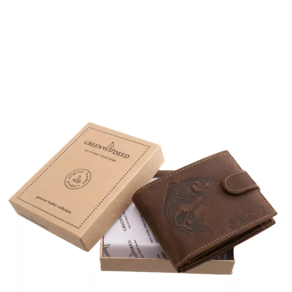 GreenDeed átfogópántos bőr pénztárca ponty 3D lenyomattal, RFID, 10,8 × 8,5 cm