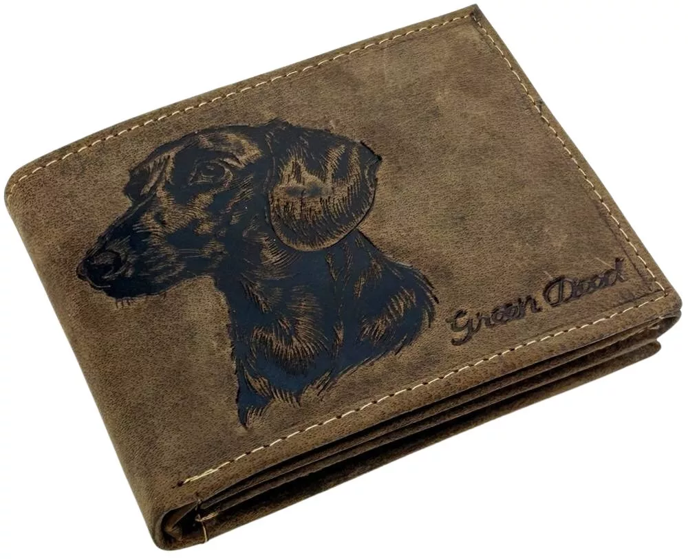 GreenDeed bőr pénztárca tacskó mintával, RFID védelemmel 12 × 9,2 cm